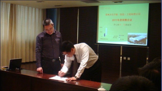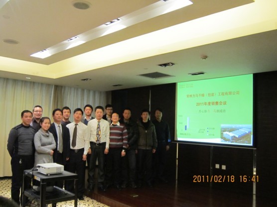常州力馬干燥(包裝)工程有限公司2011年度銷售會(huì)議于2011年2月18日在常州新都大酒店竹林廳勝利召開(kāi)。