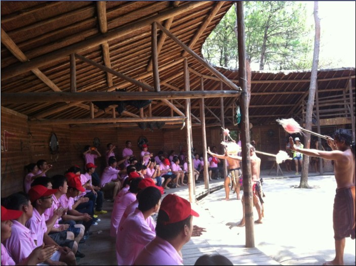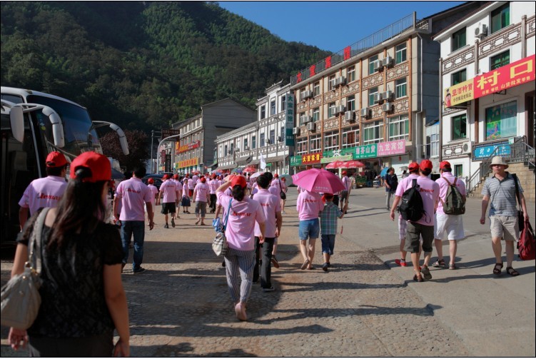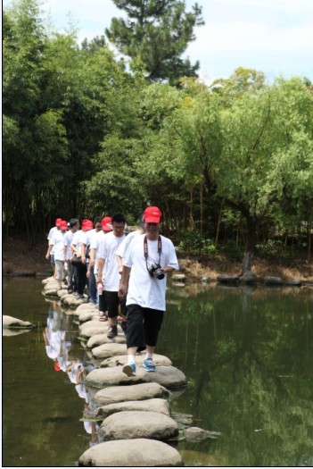 8月17日,旅游首日,上午三輛豪華大巴抵達安吉,游覽【竹博園】。在翠竹叢中,觀賞獨具匠心的造景藝術(shù),閱覽源遠流長的竹子傳說和典故。行走于竹峰棧道,著實體驗了一番竹林騰飛的意境。農(nóng)家午餐略作休憩,全員抵達【黃浦江源漂流】景區(qū)。當(dāng)多艘竹筏在風(fēng)光迷人、碧水映天的畫卷中靈動,當(dāng)百余摯朋在嬉鬧樂呵、心神騰飛的境界里共鳴, 艷陽高照,歡歌四起,每個力馬人的笑容都如水天一色般迷人。漂流結(jié)束,入住農(nóng)家,舉辦“篝火晚會”,多項互動節(jié)目寓教于樂,重申企業(yè)理念,抒發(fā)人文關(guān)懷。