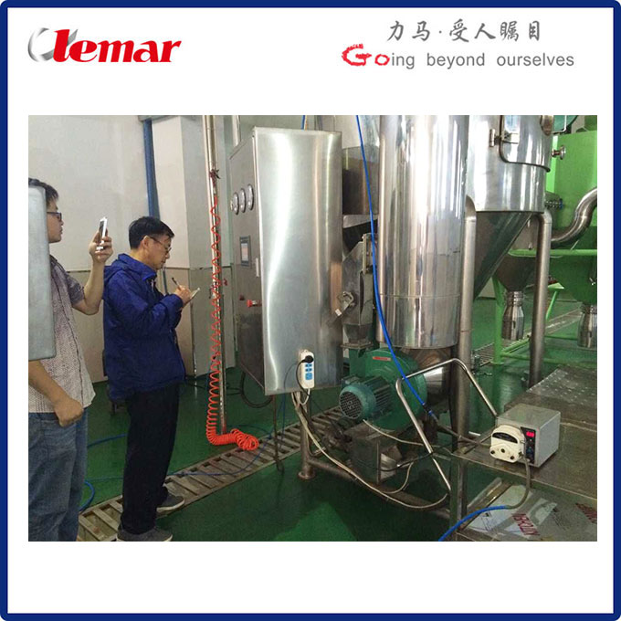 2015年5月16日湖南一制藥公司的張工和徐公一行到我公司進(jìn)行中藥制粉實(shí)驗(yàn),經(jīng)過40分鐘的等待,紅糖色的中藥液體很快變成了細(xì)膩的紅糖色粉末,色澤與中藥液體相同,味道也無差異,口感非常棒,得到了客戶的好評(píng)。