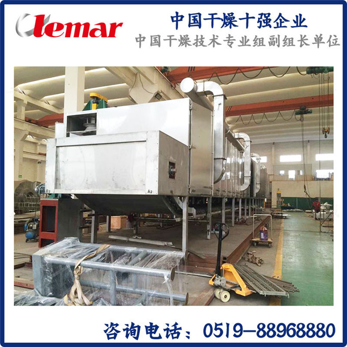 武漢康樂藥業(yè)有限公司采用我公司DW3-2X8A帶式干燥機(jī)來烘干中藥切片,還配套了皮帶輸送機(jī),擺動布料器等設(shè)備,形成了中藥切片干燥生產(chǎn)線。